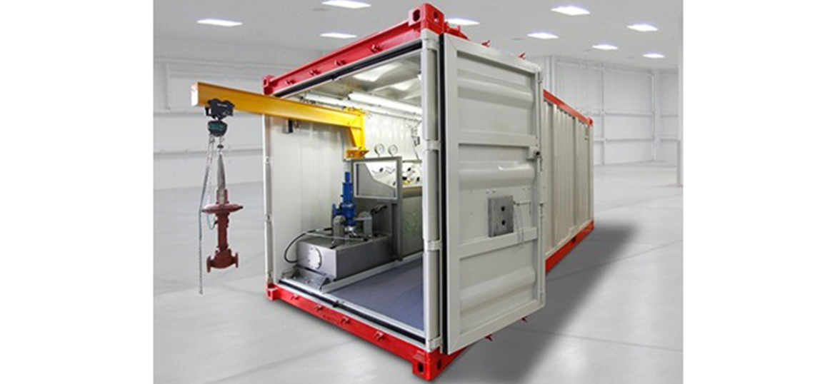 Mobile valve testing workshop, equipped with complete equipment set to repair and test valves onsite. The unit is professionally designed to accommodate all required equipment in the right place including electrical & pneumatic supply lines with proper lighting and air conditioning for easy access during valve repair and testing process. It has swing-out crane with 0.5 tons capacity for handling the Valve components and also ensures the best access to the equipment.